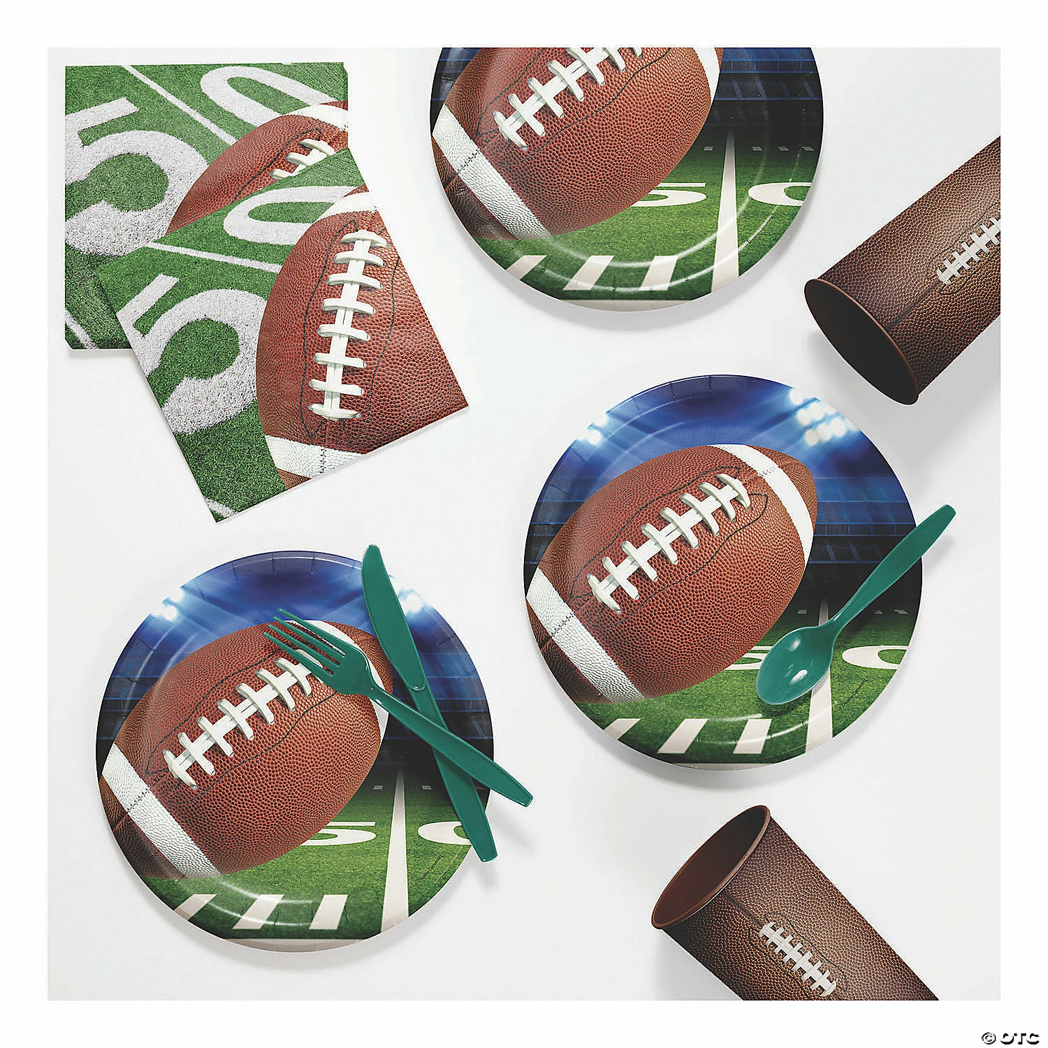 Each Football Party Tailgate Kit contains: 8 Football Party Paper Plates (9″), 16 Football Party Napkins (6.5″), 8 Football 22 oz Plastic Cups (22 oz), and 8 Hunter Green Forks, Spoon, and Knives. Host a winning football tailgate with help from our Football Party Tailgate Kit. This kit includes all the tableware you need to host a tailgate for up to eight guests. The party supplies in this kit feature football, stadium, and field elements. The included plastic cups are perfect for your favorite pregame beverage! Grab this kit and start planning your perfect tailgate. Special Shipping Information: This item ships separately from other items in your order. This item cannot ship to a P.O. Box. This item may be subject to additional processing days. ITEM IS NOT ELIGIBLE FOR EXPEDITED SHIPPING