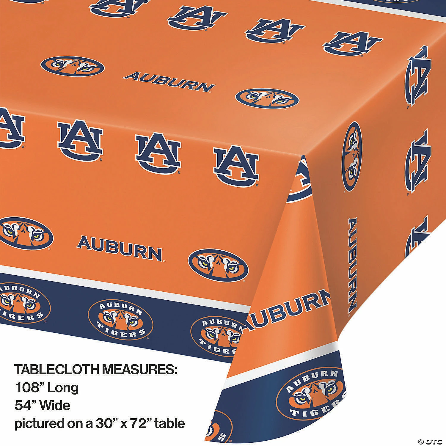 Dress your table in true Tiger style for the next tailgate, party, or cookout with this Auburn University Table Cover. This tablecloth features a cool pattern design of the Tigers logo along with the school colors. Match the Auburn Tigers Table Cover with other Auburn party supplies and decorations to show your school spirit. Special Shipping Information: This item ships separately from other items in your order. This item cannot ship to a P.O. Box. This item may be subject to additional processing days. ITEM IS NOT ELIGIBLE FOR EXPEDITED SHIPPING