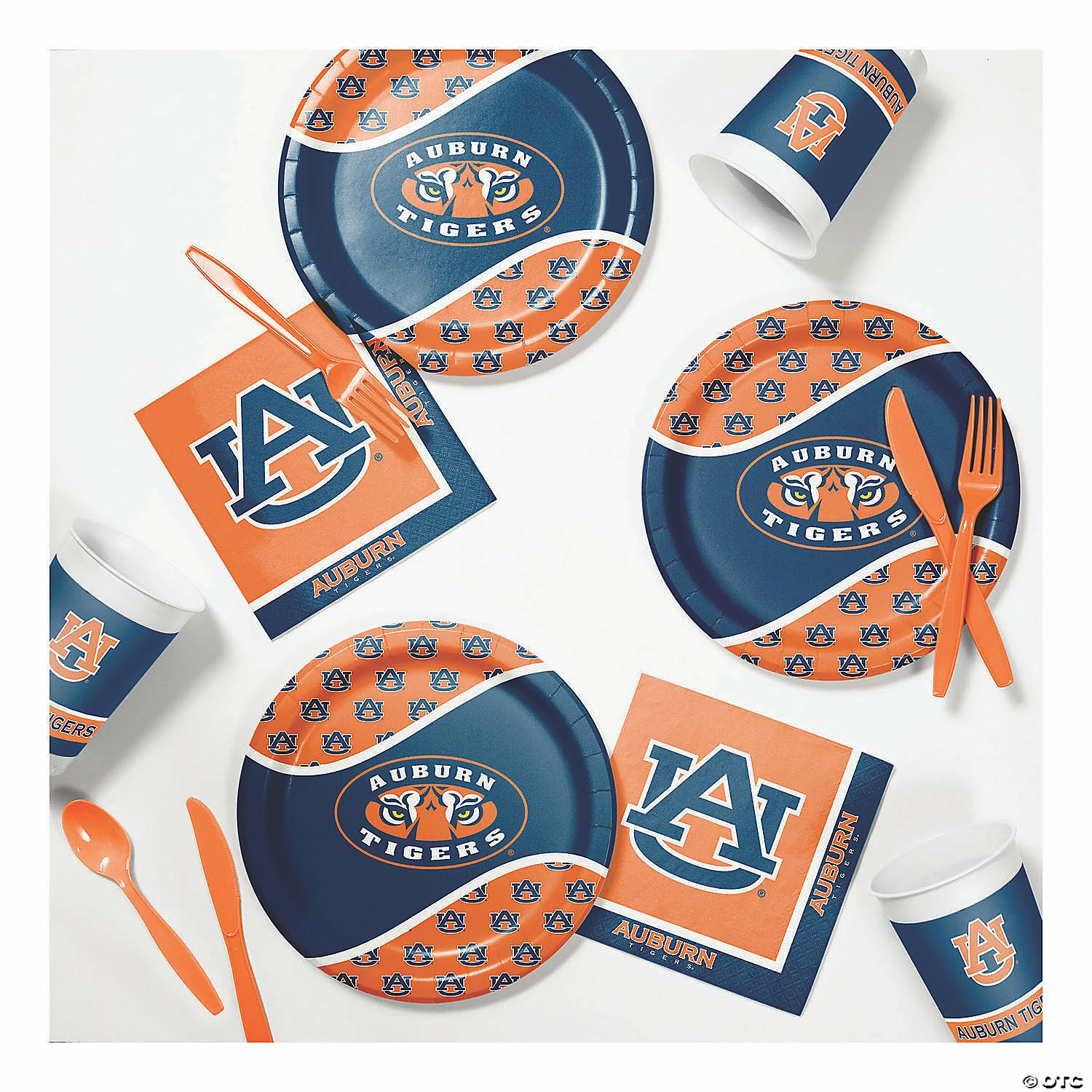 Each Auburn University Tailgating Kit contains: 8 Auburn University Paper Plates, 20 Auburn University Napkins, 8 Auburn University Plastic Cups and 24 Sunkissed Orange Assorted Plastic Cutlery pieces.ย Use theseย Tigers plates, napkins and cups to show love for your team. This Auburn University tailgating kit lets you party in styleย while you wait for the big game with all of your fellow Tigers fans. Special Shipping Information: This item ships separately from other items in your order. This item cannot ship to a P.O. Box. This item may be subject to additional processing days. ITEM IS NOT ELIGIBLE FOR EXPEDITED SHIPPING