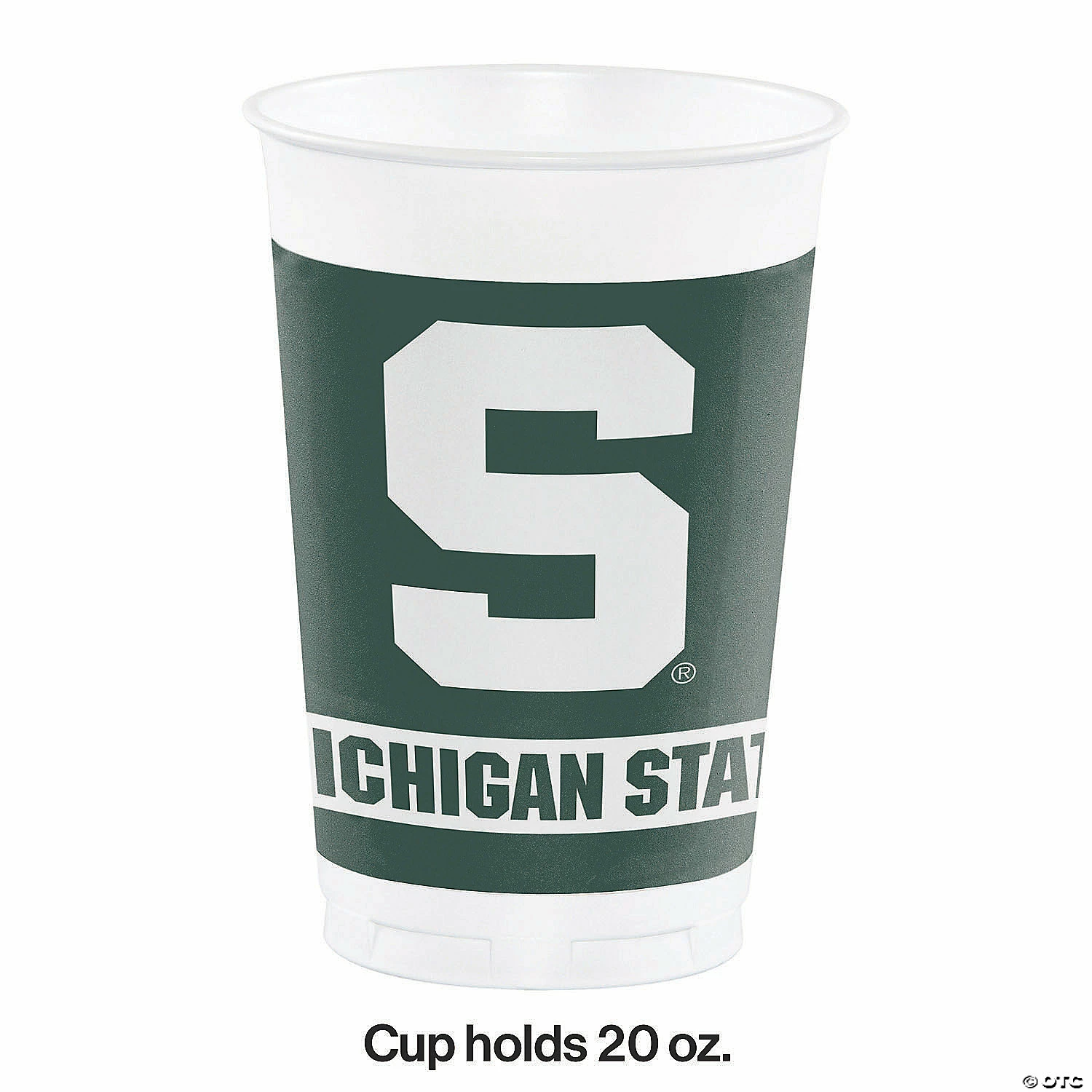 Serve your tailgate drinks in style with these 20 oz. Michigan State University Cups. The sturdy plastic cups feature the Spartans’ logo and school colors and will surely display your team pride. Sold in packs of 24, coordinate the reusable cup with other Michigan State University theme party supplies. Special Shipping Information: This item ships separately from other items in your order. This item cannot ship to a P.O. Box. This item may be subject to additional processing days. ITEM IS NOT ELIGIBLE FOR EXPEDITED SHIPPING
