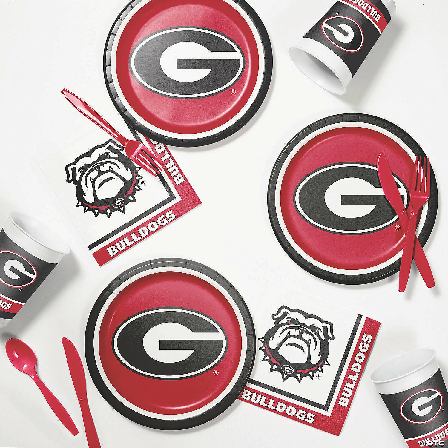Each University of Georgia Tailgating Kit includes 8 University of Georgia Paper Plates, 20 University of Georgia Napkins, 8 University of Georgia 20 oz. Plastic Cups, and 8 red forks, spoons and knives. Cheer on UGA with napkins, plates, and cups covered in UGA colors. Perfect for game day, this kit includes everything you’ll need for a successful tailgate. Special Shipping Information: This item ships separately from other items in your order. This item cannot ship to a P.O. Box. This item may be subject to additional processing days. ITEM IS NOT ELIGIBLE FOR EXPEDITED SHIPPING