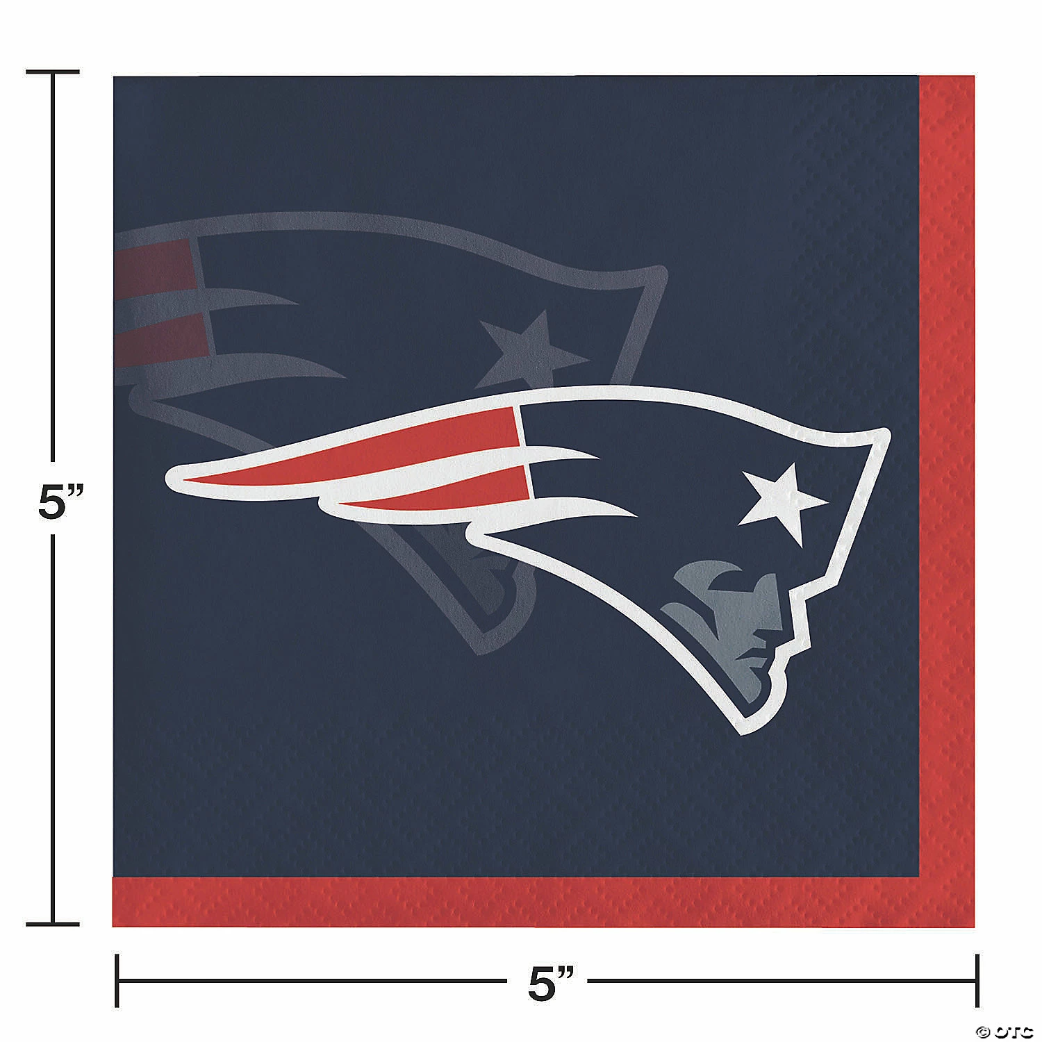 Cheer for your favorite team and watch party guests go wild over the officially licensed New England Patriots Beverage Napkins which showcase the team’s colors and logo. The deep blue napkin measures 5” x 5” and is constructed of absorbent 2-ply tissue and decorated with bright red borders along two sides and the New England Patriots famous logo in the center with a fading version of the emblem in the background. Sold 48 per package, the napkins can be passed out with appetizers, finger foods, desserts or beverages at any gathering of fans celebrating the popular AFC East team. Special Shipping Information: This item ships separately from other items in your order. This item cannot ship to a P.O. Box. This item may be subject to additional processing days. ITEM IS NOT ELIGIBLE FOR EXPEDITED SHIPPING