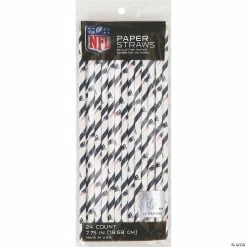 Some of the best fun is in the small details, and the New England Patriots Paper Straws elevate team spirit with the New England Patriots colors and logos printed right on the sturdy paper product. The white straws features a dark blue line spiraling around small patriot head symbols making them ideal to use with cold sodas or tasty cocktails sipped out of the matching 20 ounce cups. Sold 72 per package, set the straws in a large cup for guests to grab at the drink station, or use the decorative straws as fun accents in centerpieces or food displays. Special Shipping Information: This item ships separately from other items in your order. This item cannot ship to a P.O. Box. This item may be subject to additional processing days. ITEM IS NOT ELIGIBLE FOR EXPEDITED SHIPPING