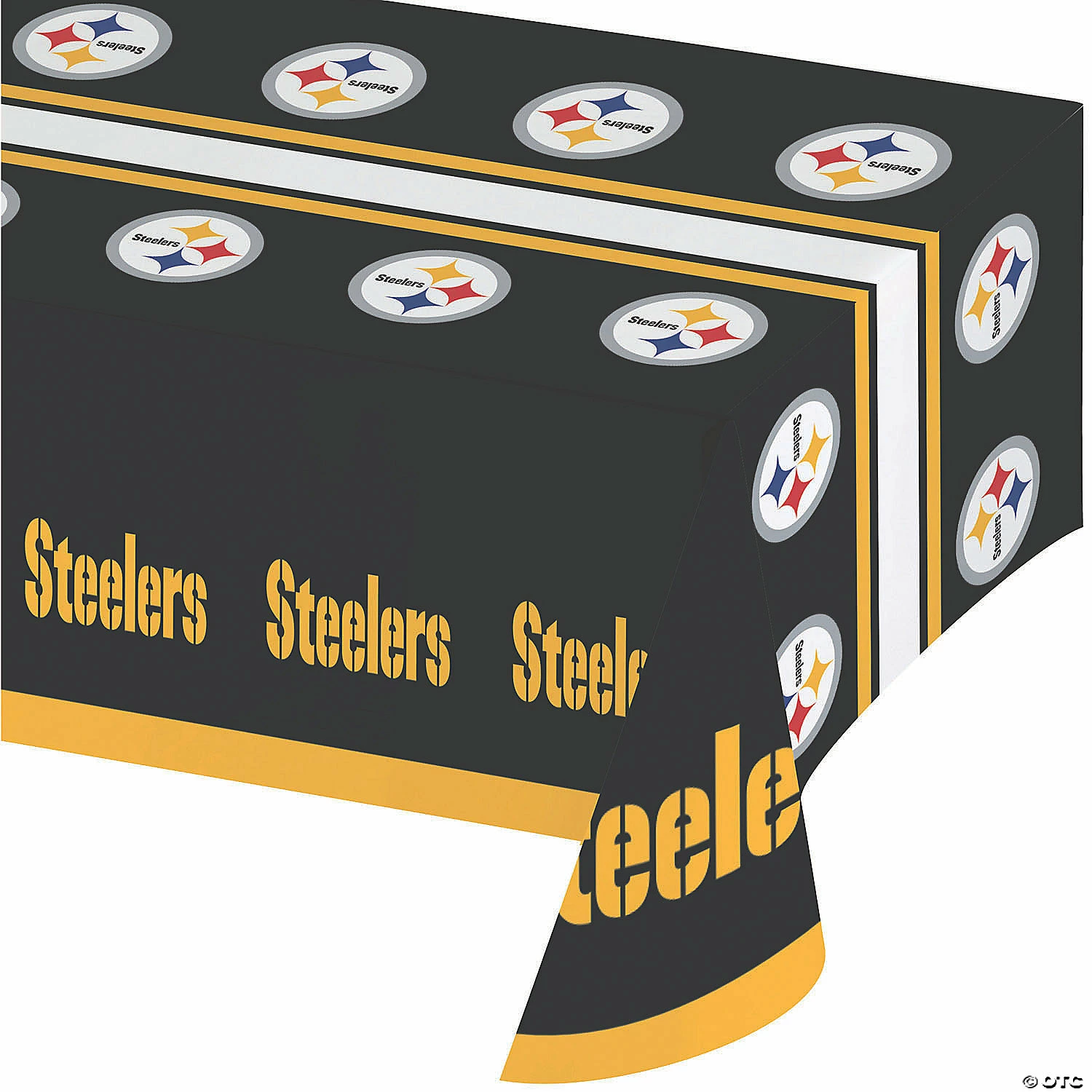 Represent the Steeler Nation at your table setting with the Pittsburgh Steelers Table Cover. This 54″ x 102″ tablecloth features a black background with imagery of the team’s logo and name printed repeatedly. Sold in packs of 3, the fun design is easy to combine with additional products from the Steelers party collection as well as solid color tableware and accessories in black, yellow, or white. Special Shipping Information: This item ships separately from other items in your order. This item cannot ship to a P.O. Box. This item may be subject to additional processing days. ITEM IS NOT ELIGIBLE FOR EXPEDITED SHIPPING